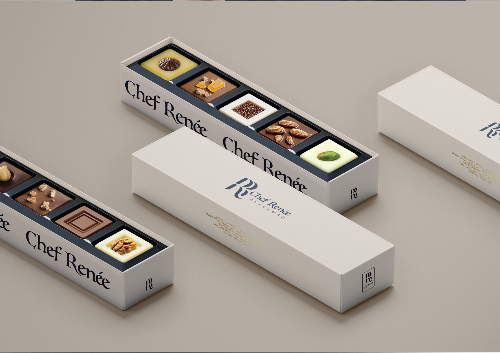 This project is a rebranding option for celebrity and private chef Renee Blackman. She wanted something modern and minimalist branding to create a new logo for different products: a hat, chefs coat, and a box for custom food like chocolates.